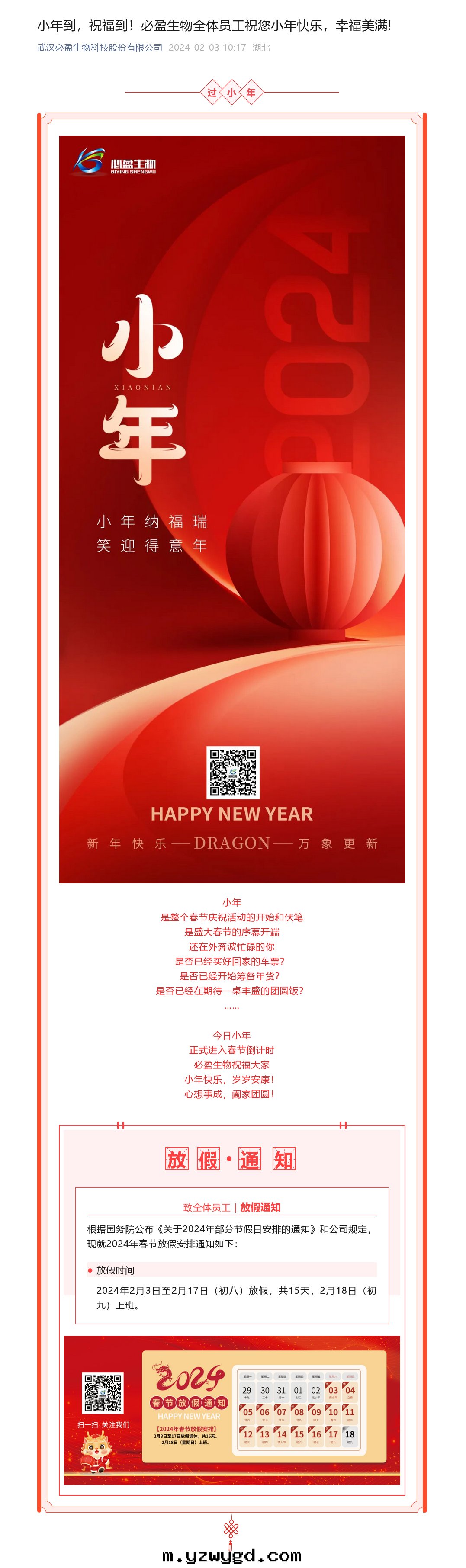 2024,小年(nián)到(dào),祝福到(dào)!必盈生(shēng)物(wù)全(quán)體(tǐ)員工祝您小年(nián)快(kuài)乐(lè),幸福美(měi)滿!