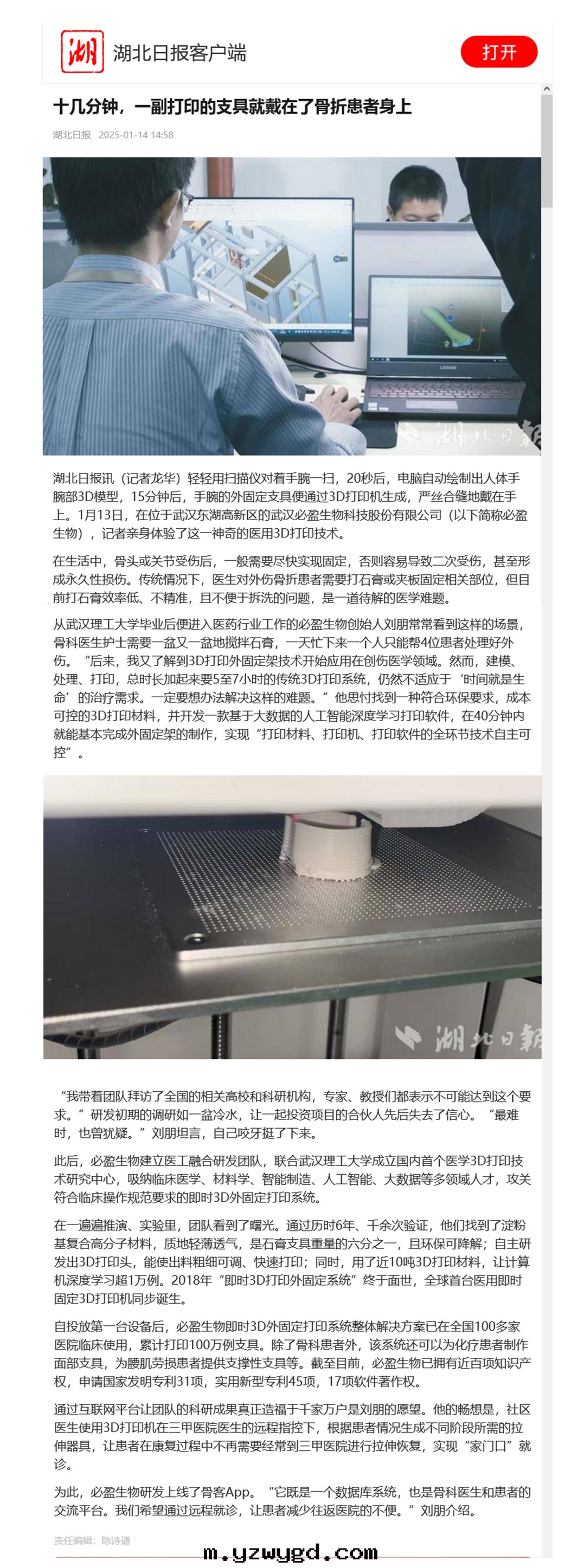 十(shí)幾(jǐ)分(fēn)鐘(zhōng),一(yī)副打印(yìn)的(de)支具就(jiù)戴在(zài)了(le)骨折患者(zhě)身(shēn)上(shàng)