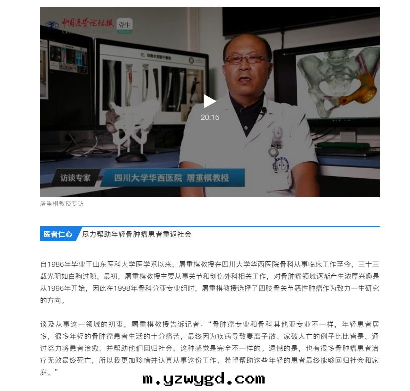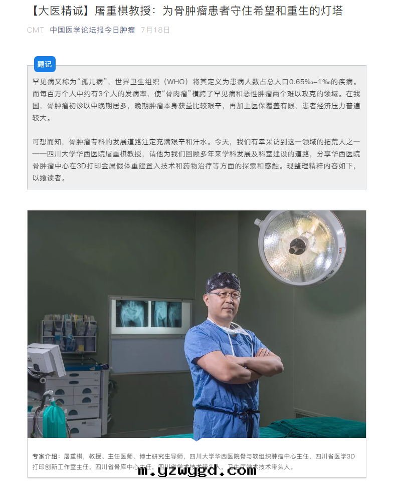 四川(chuān)大學(xué)華西(xī)医院(yuàn)—屠重(zhòng)棋教授:为(wèi)骨腫瘤患者(zhě)守住希望和(hé)重(zhòng)生(shēng)的(de)燈(dēng)塔