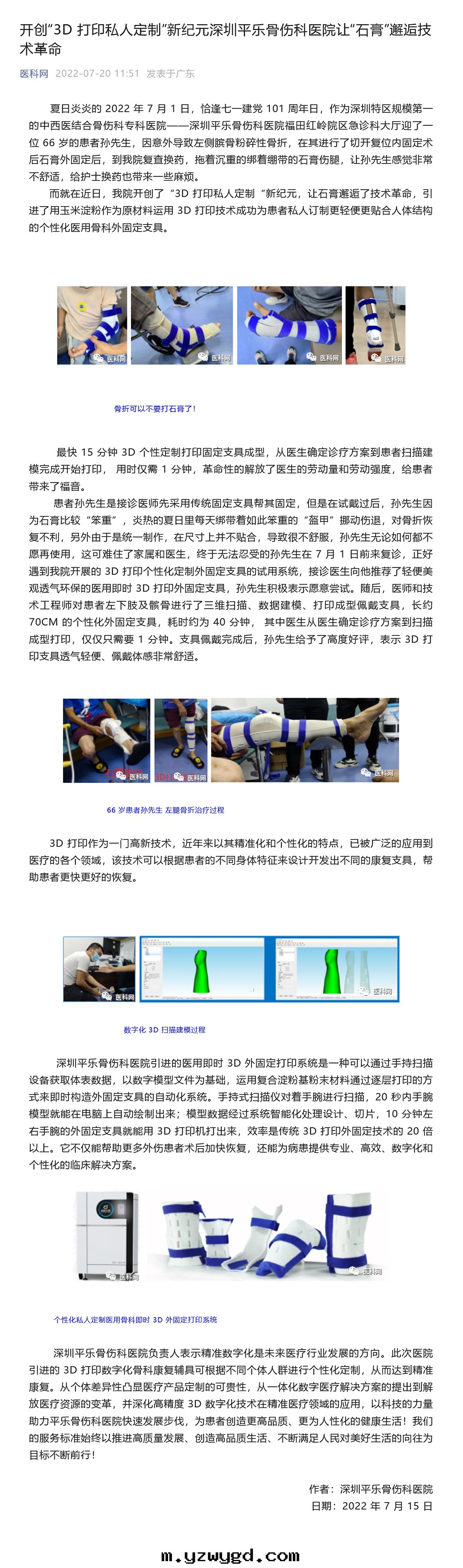 開(kāi)創“3D 打印(yìn)私人(rén)定(dìng)制”新(xīn)紀元(yuán)深圳平乐(lè)骨傷科医院(yuàn)讓“石(dàn)膏”邂逅技术革(gé)命