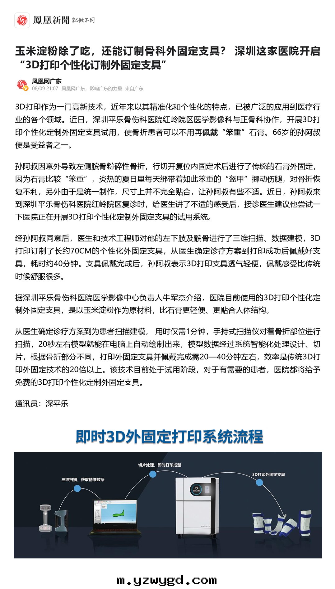 感(gǎn)謝鳳凰新(xīn)聞为(wèi)必盈合作医院(yuàn)宣傳報道,必盈即时(shí)3D外(wài)固定(dìng)打印(yìn)系(xì)統真(zhēn)是(shì)人(rén)類(lèi)的(de)福音(yīn)啊!