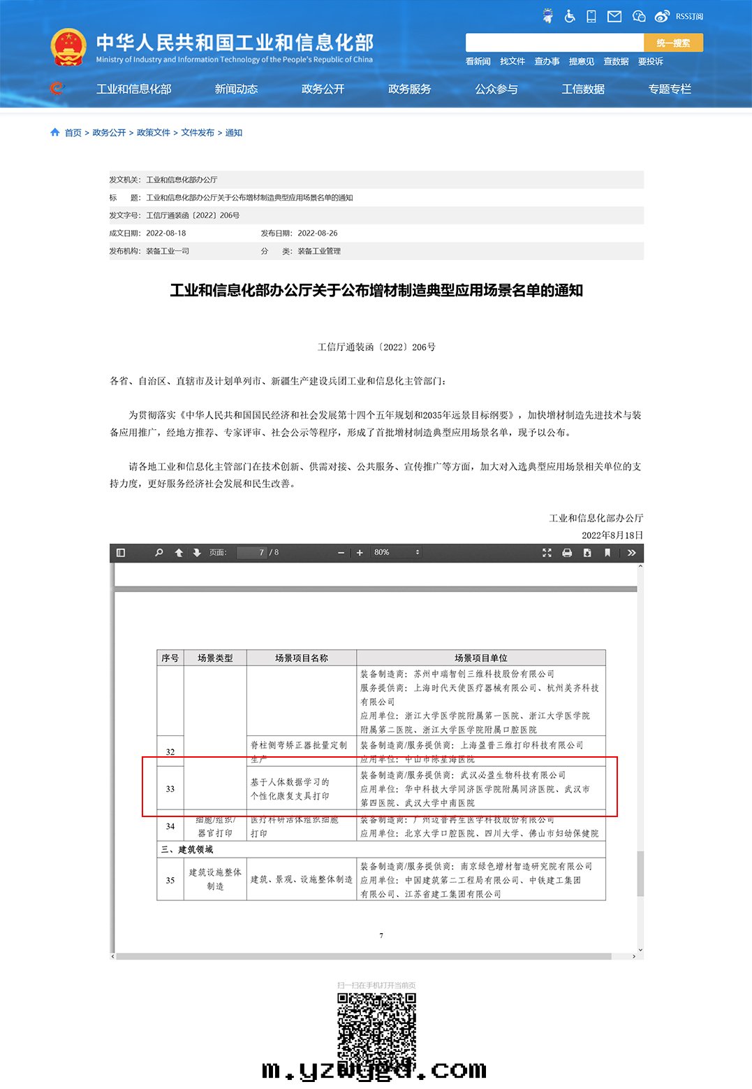 工业和(hé)信(xìn)息化部(bù)辦(bàn)公(gōng)廳關(guān)于(yú)公(gōng)布(bù)增材制造典型應(yìng)用(yòng)场景名(míng)單的(de)通(tòng)知