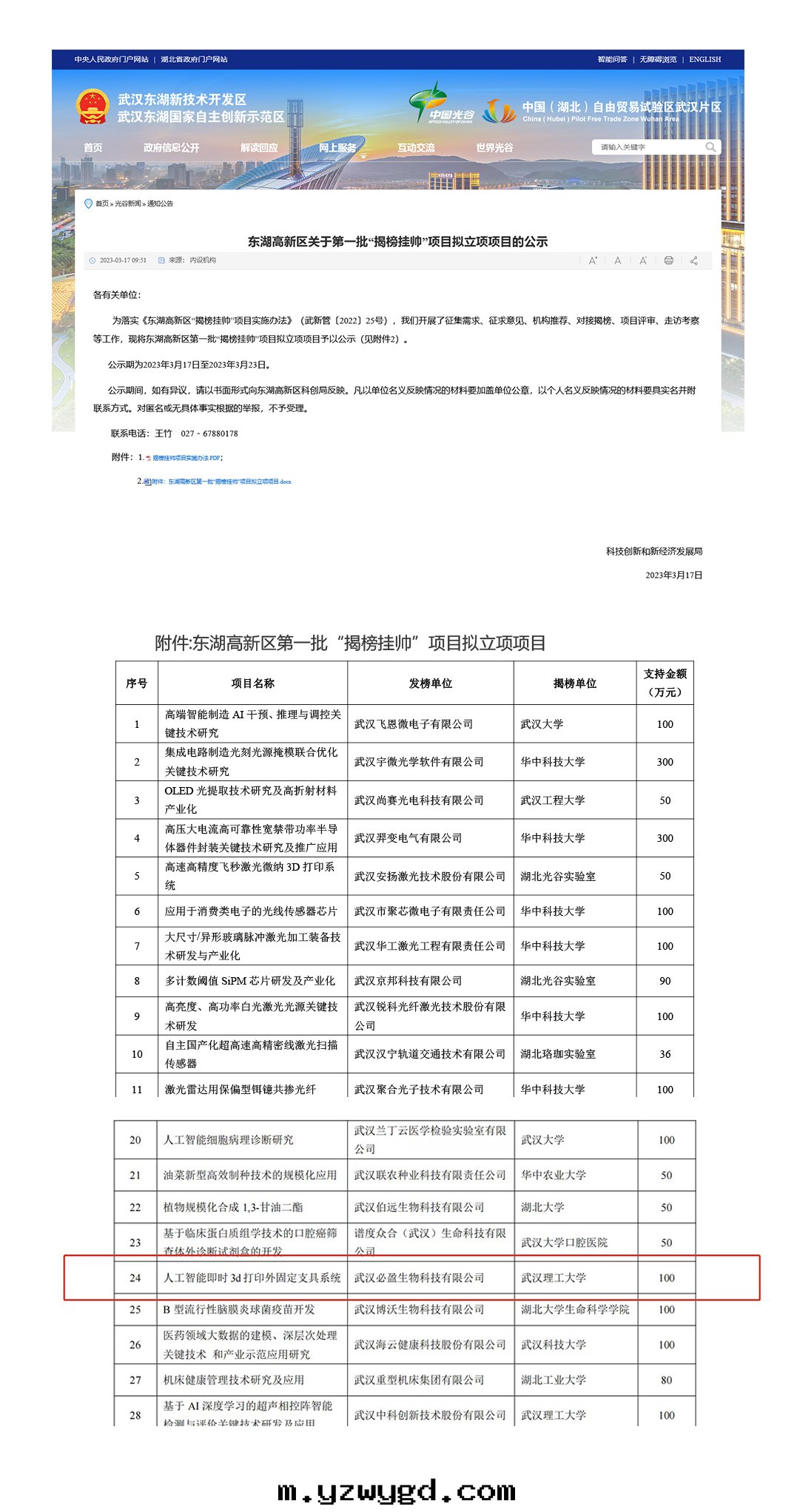 恭喜必盈生(shēng)物(wù)在(zài)東(dōng)湖(hú)高(gāo)新(xīn)區(qū)第(dì)一(yī)批“揭榜挂帥”項目中(zhōng)“人(rén)工智能(néng)即时(shí)3d打印(yìn)外(wài)固定(dìng)系(xì)統”項目獲批立項