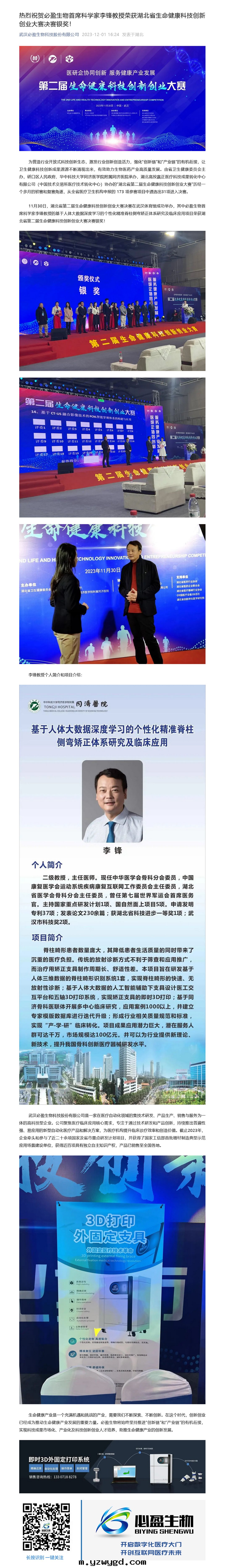 热(rè)烈祝賀必盈生(shēng)物(wù)首席科學(xué)家(jiā)李鋒教授榮獲湖(hú)北(běi)省(shěng)生(shēng)命健康科技創新(xīn)創业大賽决賽银獎!