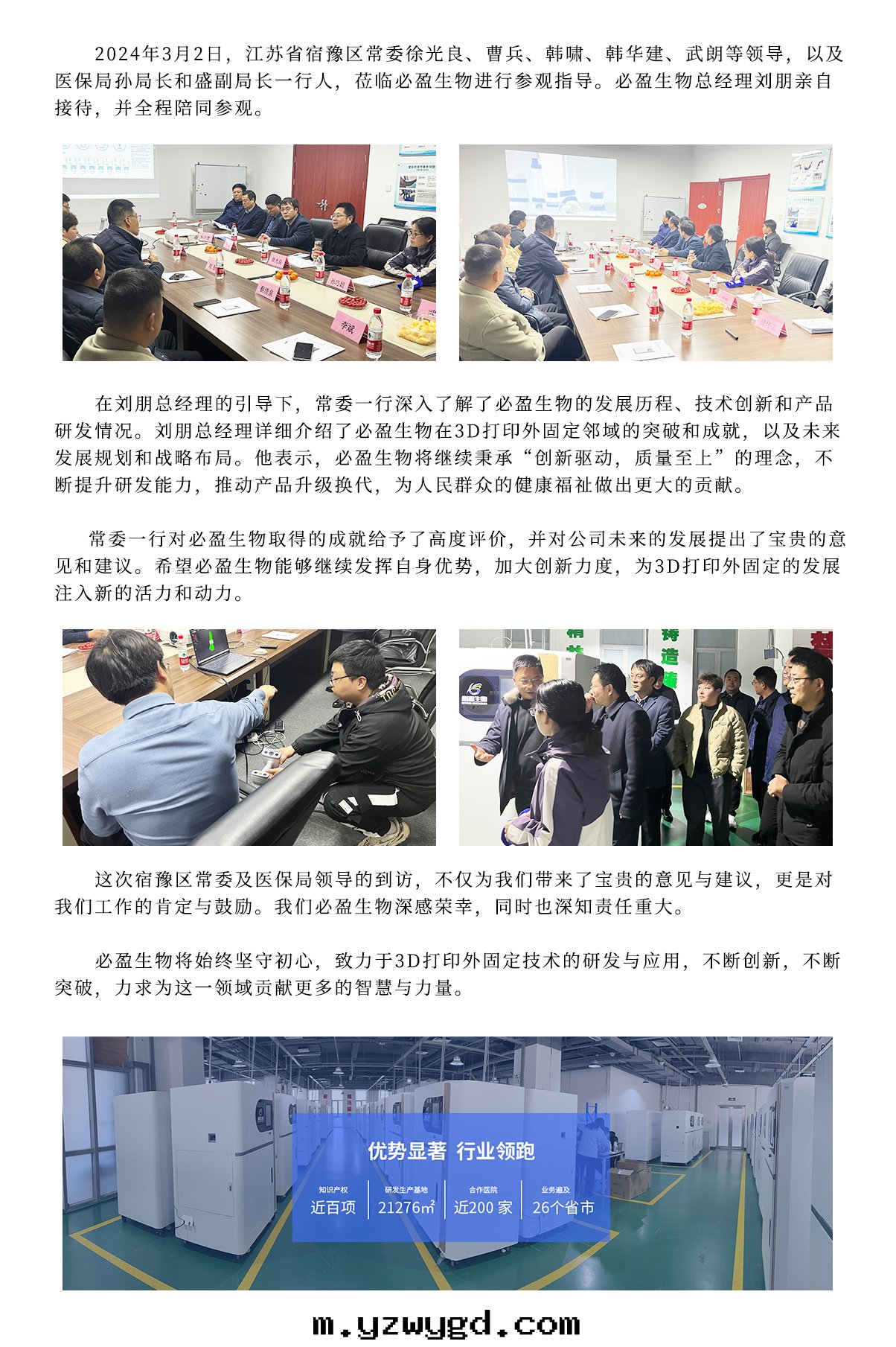 2024年(nián)3月(yuè)2号(hào)江蘇省(shěng)宿豫區(qū)常委徐光(guāng)良、曹兵、韓嘯、韓華建、武朗和(hé)医保局(jú)孫局(jú)长(cháng)和(hé)盛副局(jú)长(cháng)一(yī)行人(rén)莅臨必盈參觀