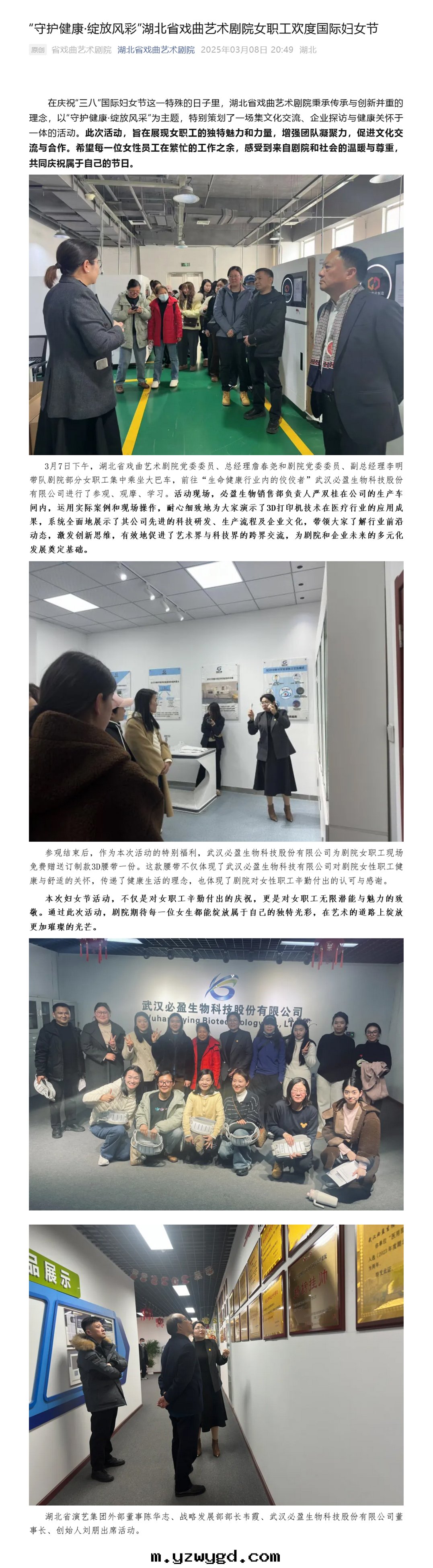 湖(hú)北(běi)省(shěng)戲曲藝术劇院(yuàn)女職工赴必盈生(shēng)物(wù)科技股份有(yǒu)限公(gōng)司開(kāi)展(zhǎn)"三(sān)八(bā)"國(guó)際婦女节(jié)主(zhǔ)題(tí)活動(dòng)
