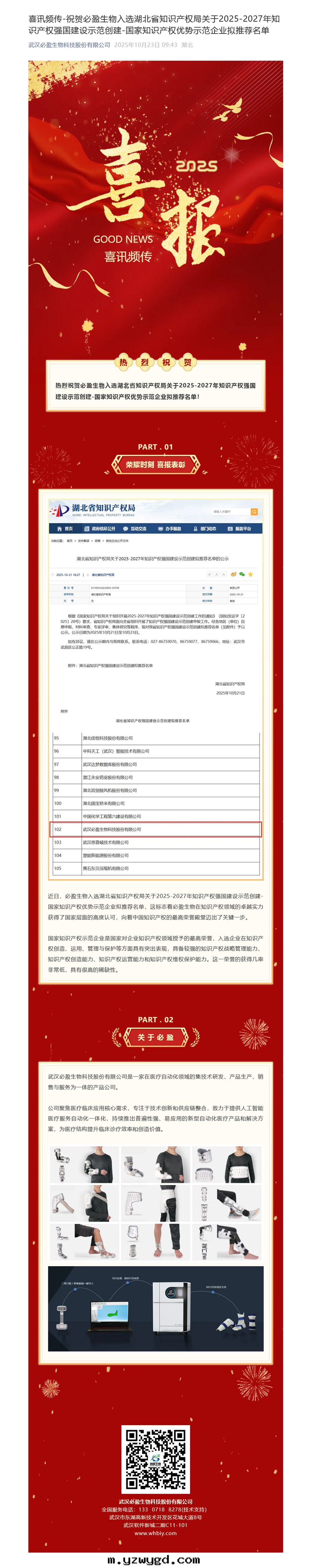 喜訊頻傳-祝賀必盈生(shēng)物(wù)入(rù)選湖(hú)北(běi)省(shěng)知識産權局(jú)關(guān)于(yú)2025-2027年(nián)知識産權強(qiáng)國(guó)建設示範創建-國(guó)家(jiā)知識産權優勢示範企业拟推薦名(míng)單