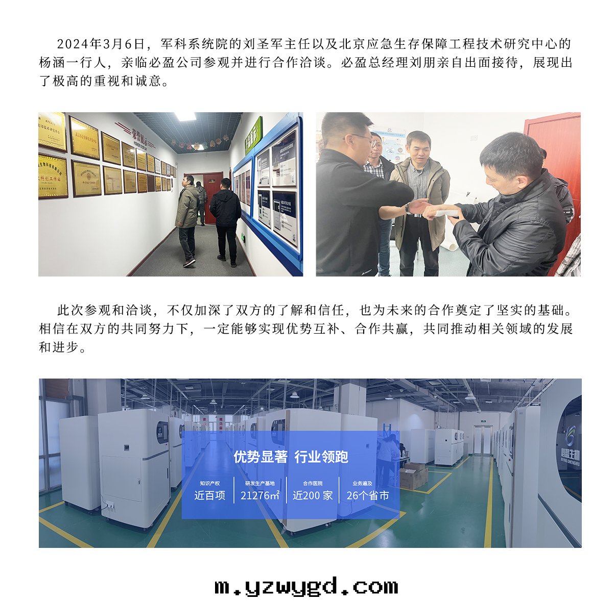 2024年(nián)3月(yuè)6日(rì)軍科系(xì)統院(yuàn)劉聖軍主(zhǔ)任、北(běi)京(jīng)應(yìng)急生(shēng)存保障工程技术研究中(zhōng)心(xīn)楊涵一(yī)行人(rén)莅臨必盈參觀