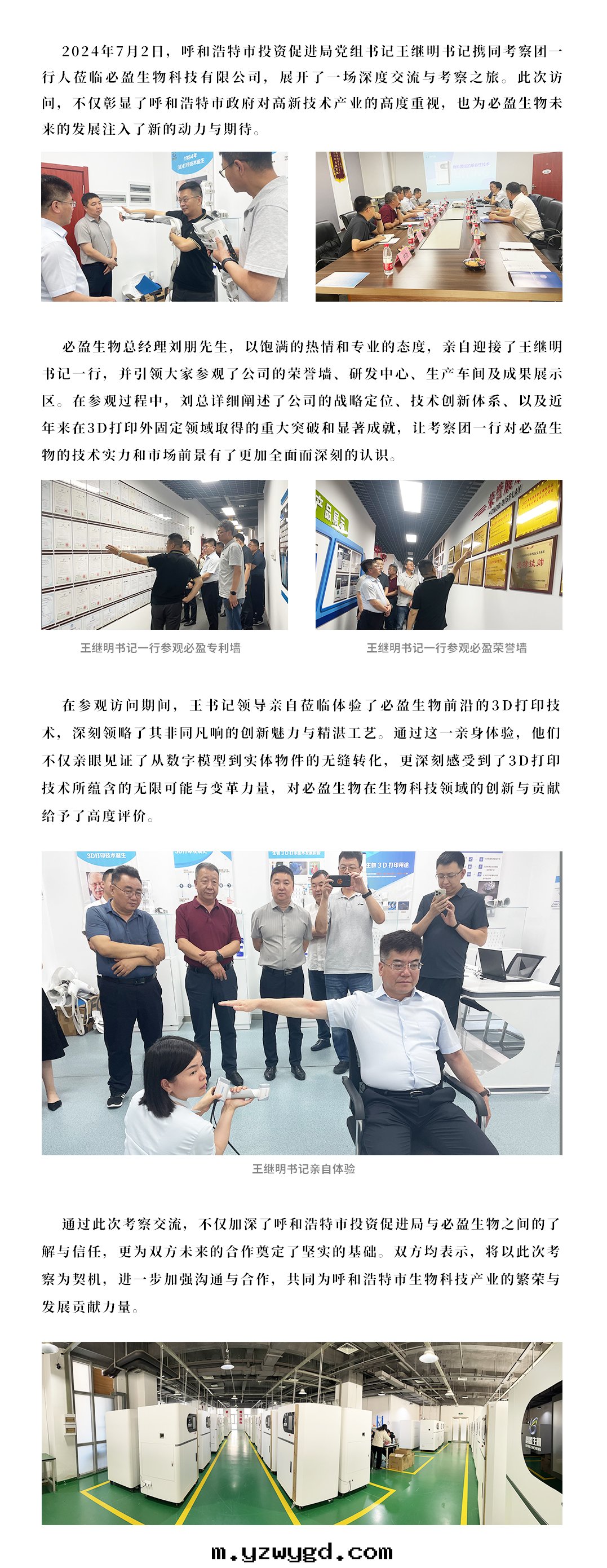 2024年(nián)7月(yuè)2日(rì)呼和(hé)浩特(tè)市投資促進(jìn)局(jú)黨组書(shū)記(jì)王繼明(míng)一(yī)行人(rén)參觀必盈生(shēng)物(wù)