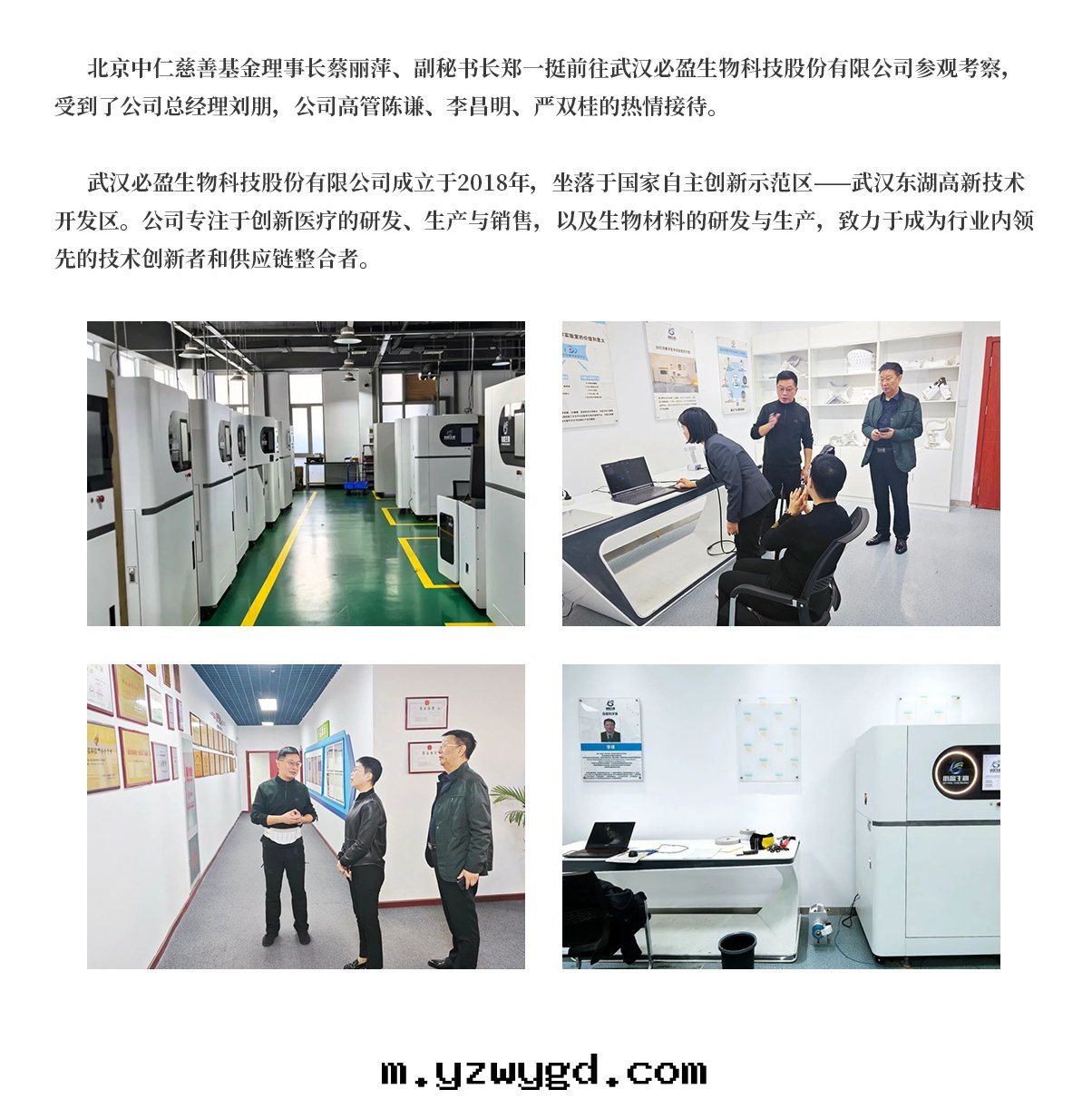 2024年(nián)11月(yuè)北(běi)京(jīng)中(zhōng)仁慈善基金理(lǐ)事长(cháng)蔡麗萍、副秘書(shū)长(cháng)鄭一(yī)挺前(qián)往武漢必盈生(shēng)物(wù)科技股份有(yǒu)限公(gōng)司參觀考察