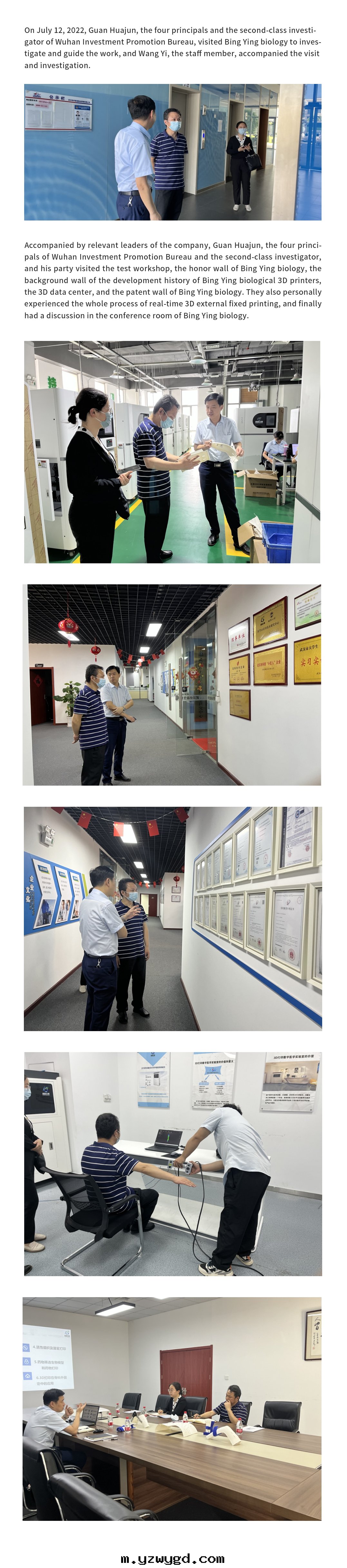 Guan Huajun, the four principals of Wuhan Investment Promotion Bureau and the second-class researcher, visited Bing Ying biology for investigation and
